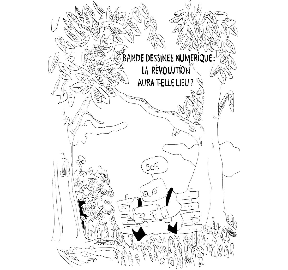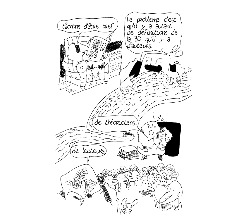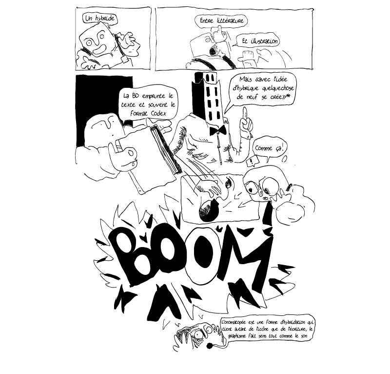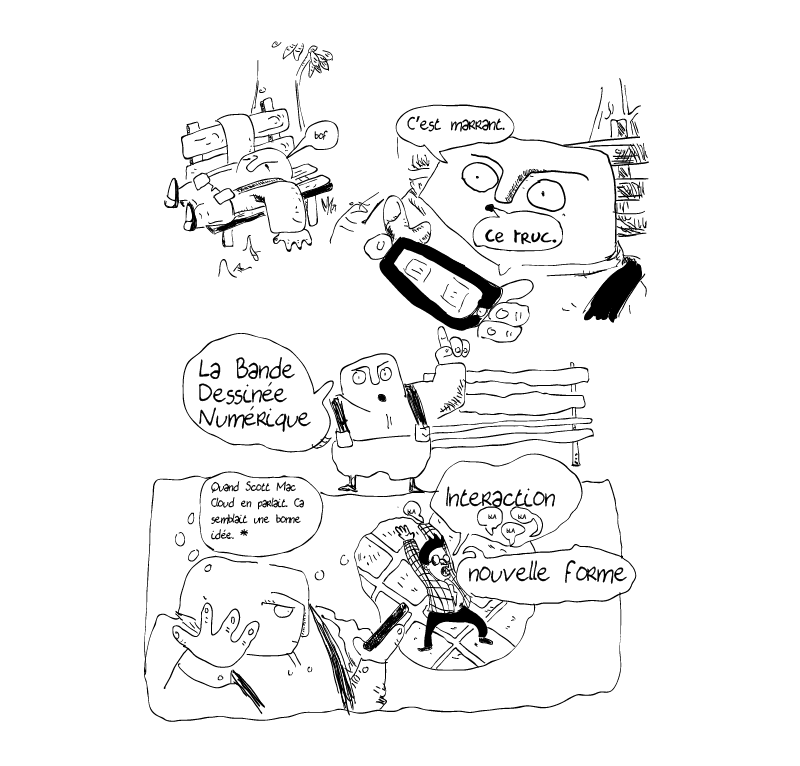 Que devient«l’art mixte» de Toepfer en absorbant les nouvelles promesses d’un autre support ? Mon mémoire de DNSEP 2014 se questionne sur le devenir de la BD numérique à travers une réflexion elle même menée en Bande-dessinée sur une centaine de page.