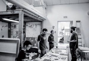 Afin de maintenir l’énergie du groupe, une série d’ateliers variés a été créée pour l’occasion, mêlant sculpture, typographie, sérigraphie, photos, pixel-art, mini jeu vidéo. À chaque atelier, un peu de matière était produite pour le projet global. Ce qui permettait d’inclure le maximum de jeunes quel que soit leur investissement.